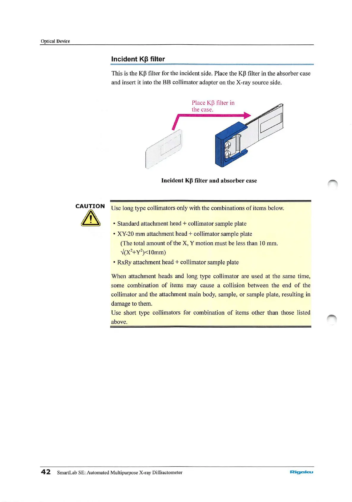 Use long type collimators only with the combinations