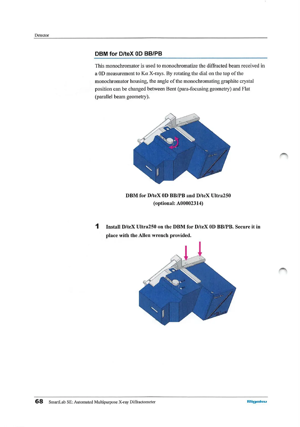 monochromator housing, the angle