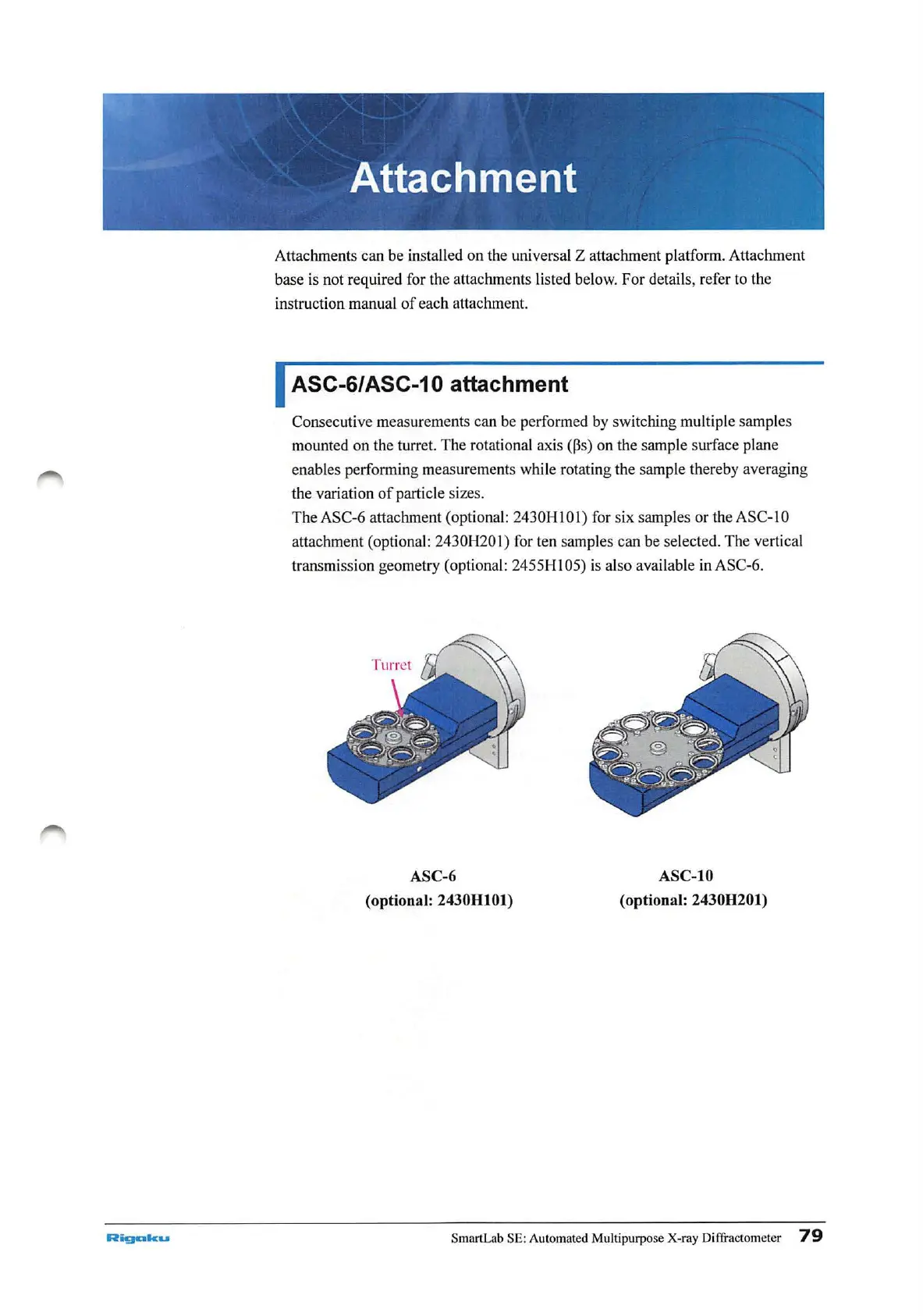 attachment (optional: 2430H 101) for six samples