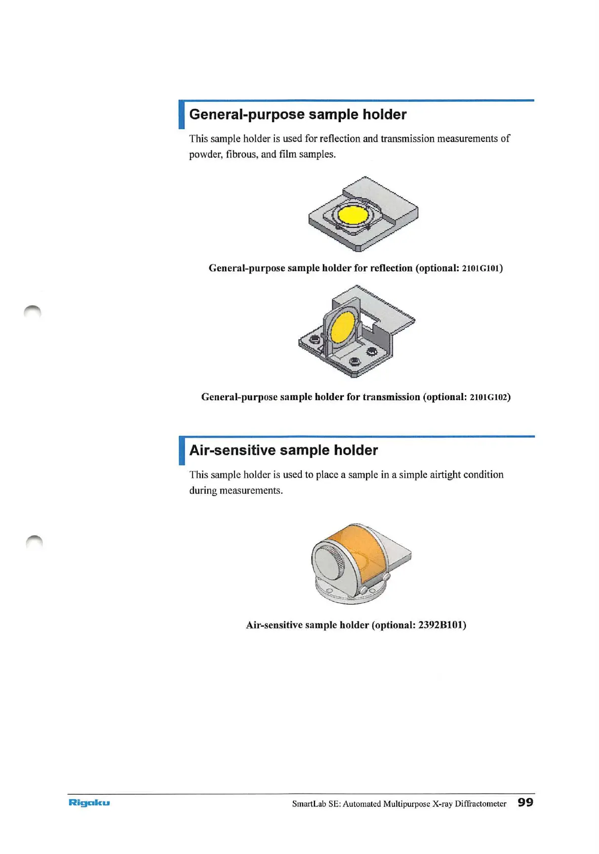 General-purpose sample holder for reflection (optional: 2101Gl01)
