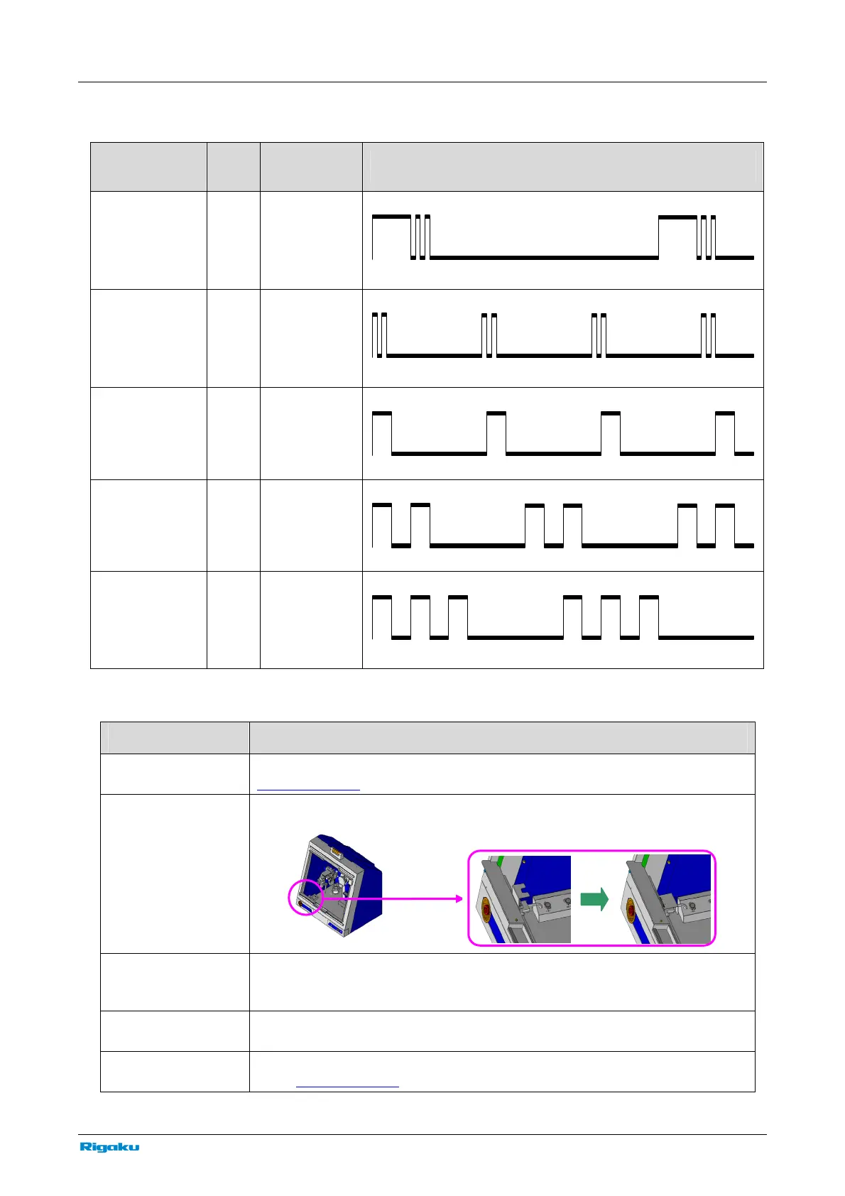 Table Patterns of the OPERATE lamp flashing and alarm sounds when an alarm generated