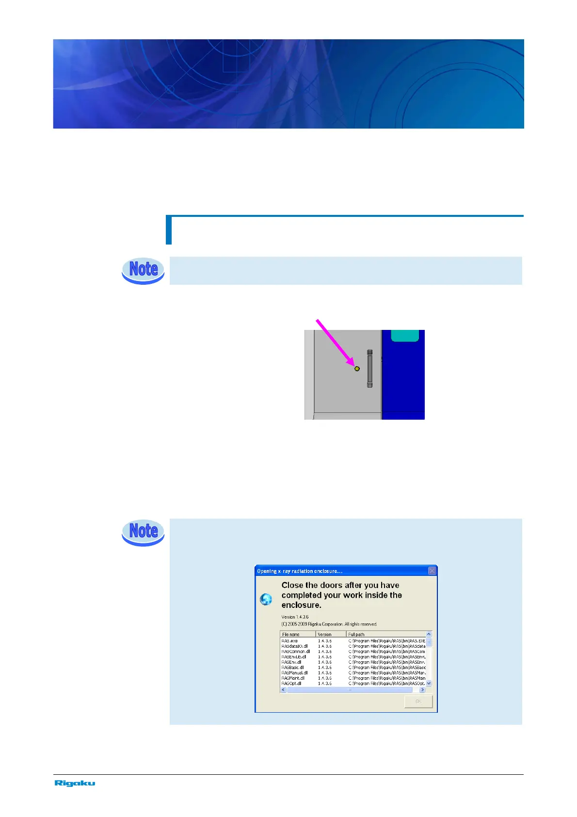 devices during x-ray generation, open and close the door by the following