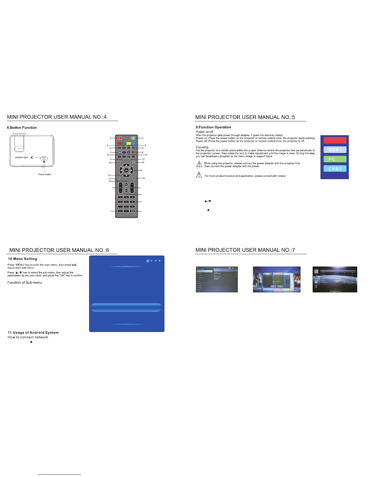 2,When the projector under “HDMI or VGA or CVBS” mode,press“exit” to return android system.