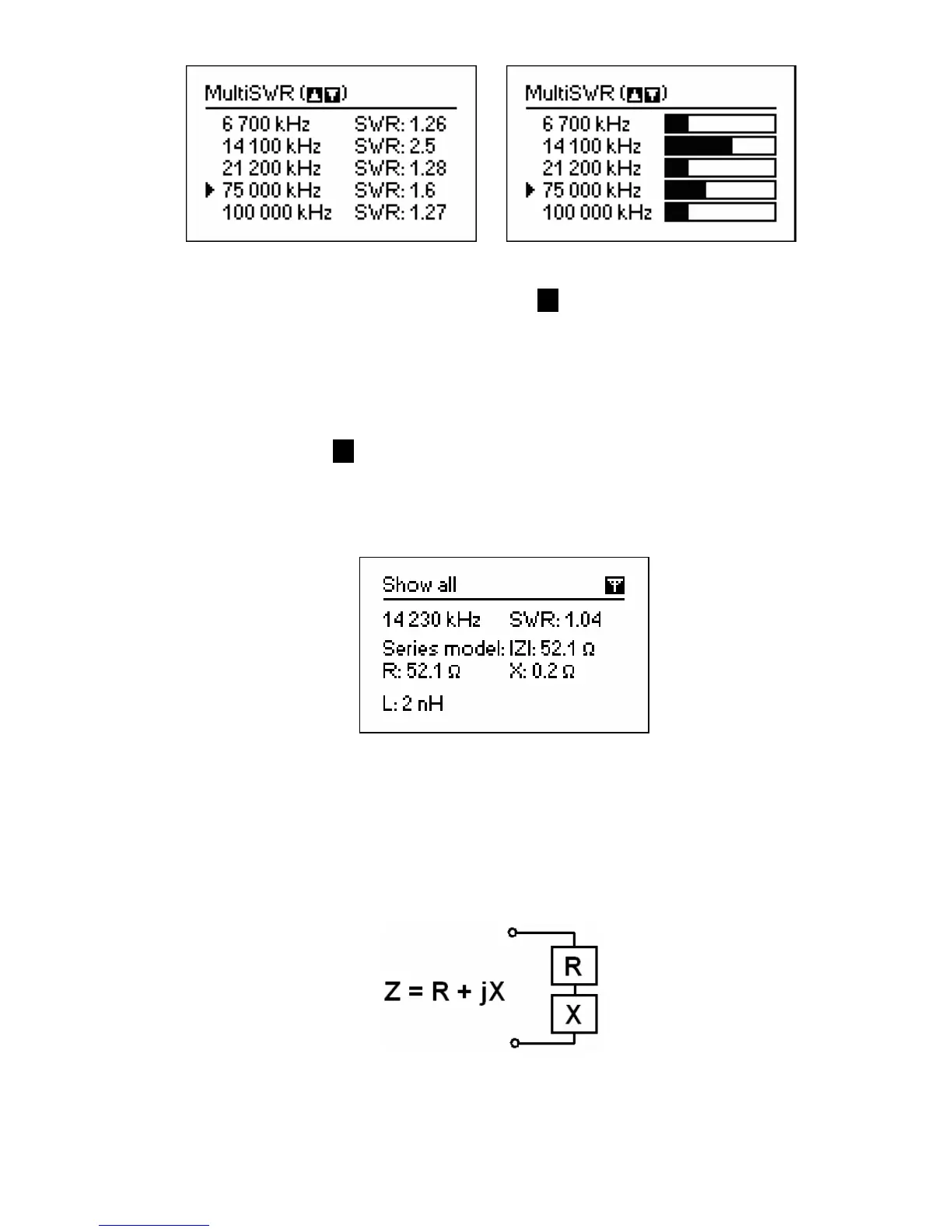 screen. Particularly, SWR, |Z| (magnitude of impedance) as well as its active (R) and