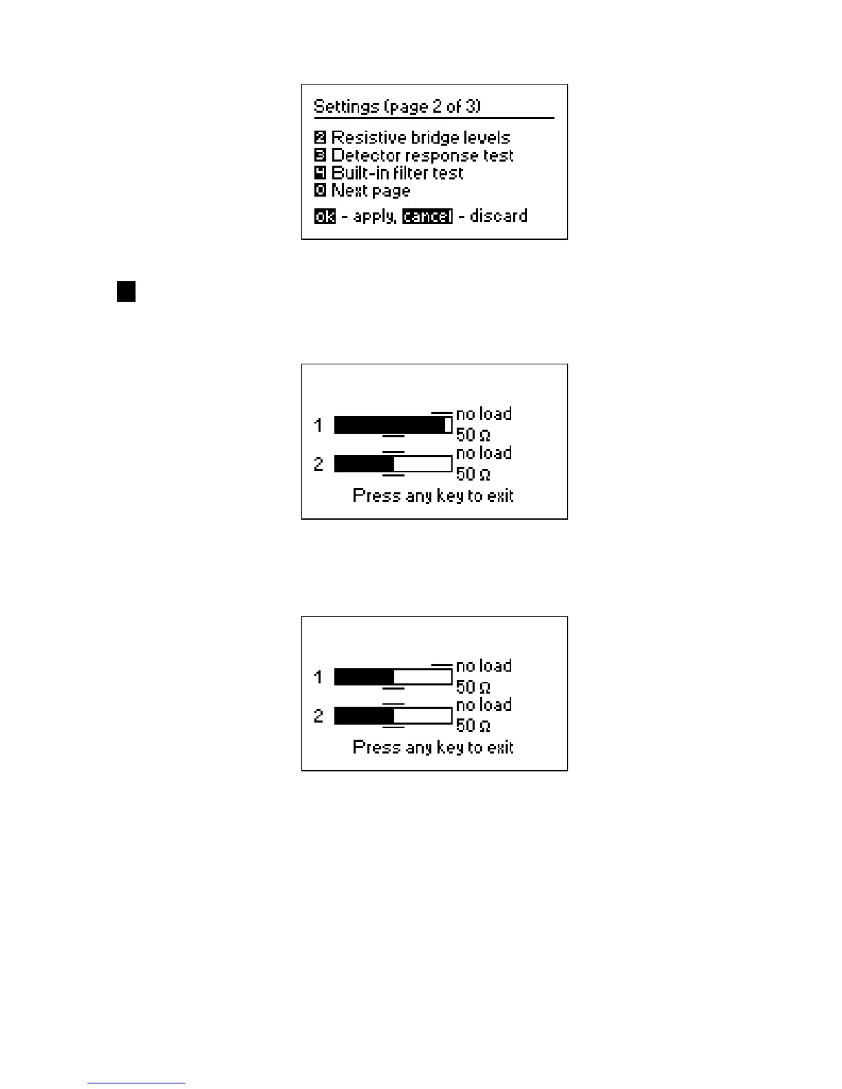 2 – RF bridge test. With no load at the antenna connector, the display should look