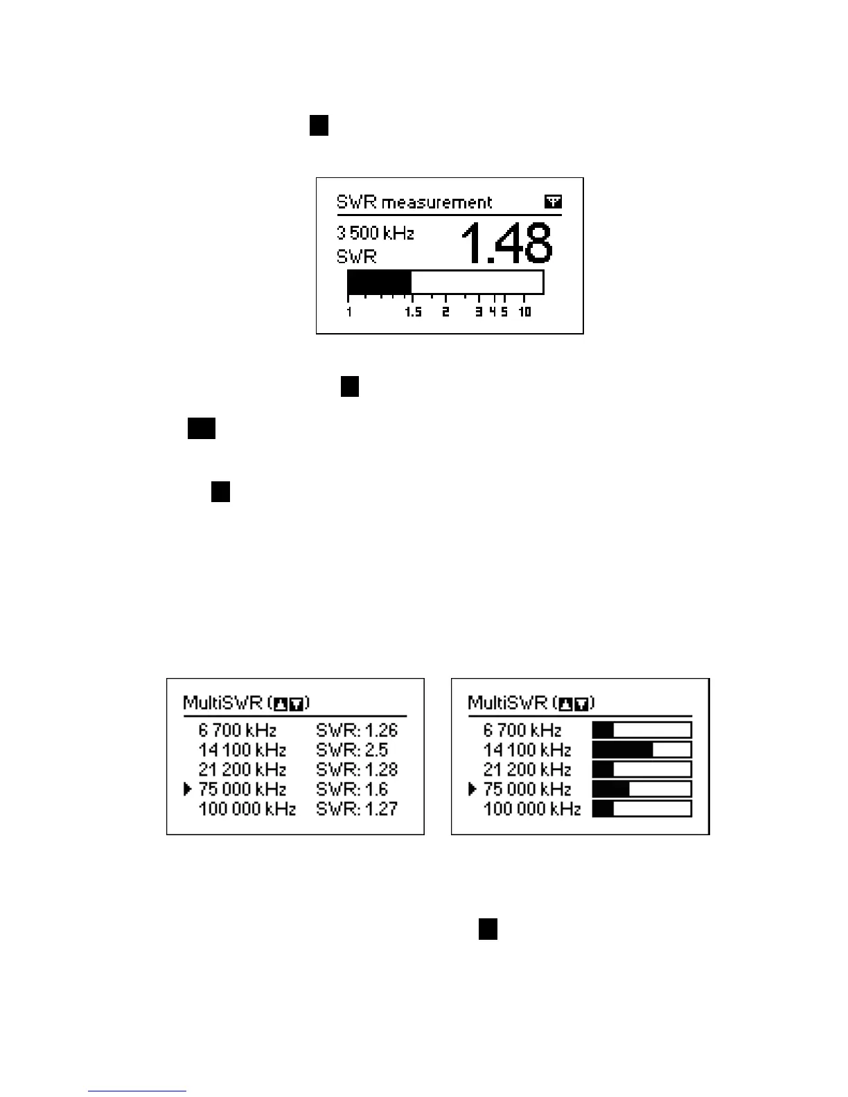 The SWR mode (press the 7 key in the Main menu) displays the SWR bar as well as