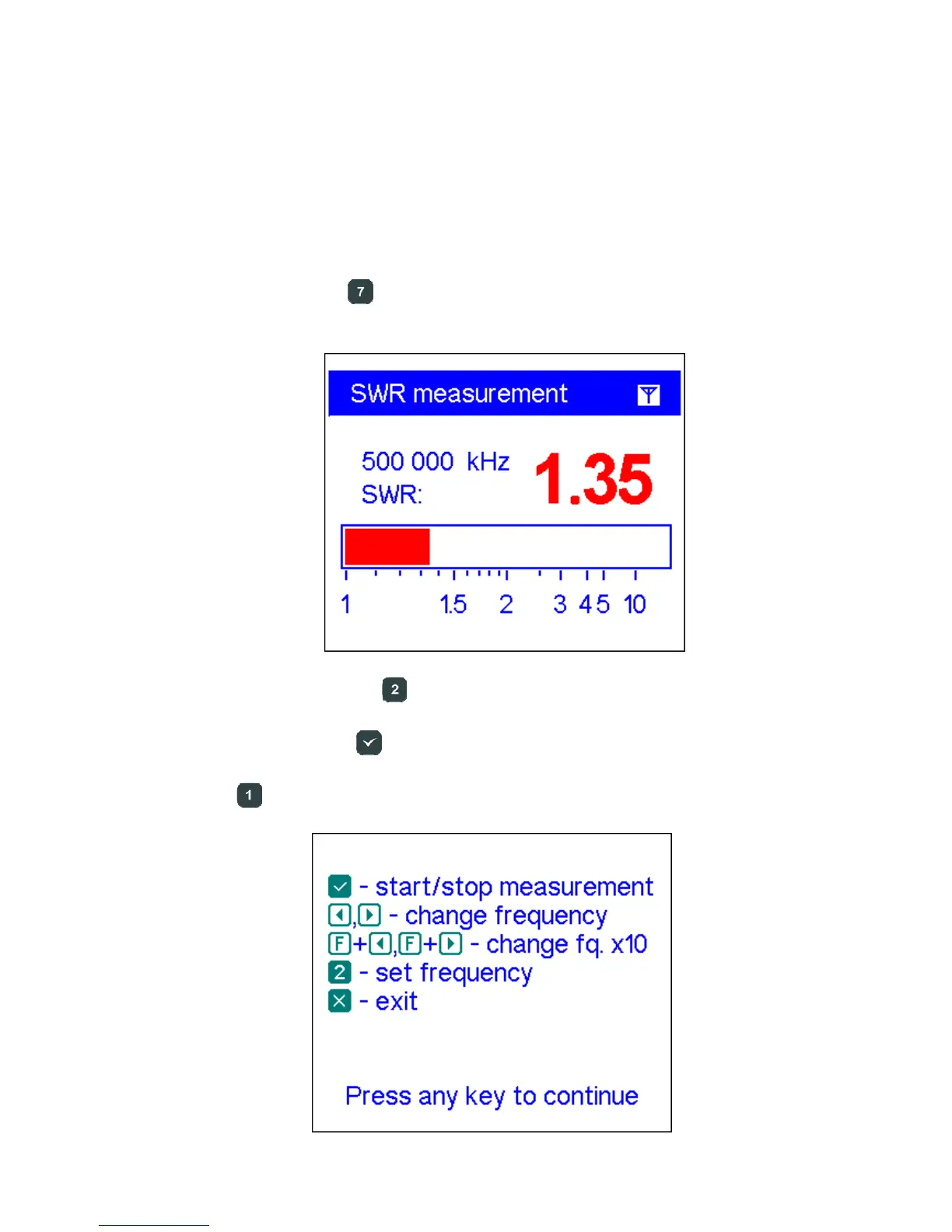 he SWR mode (press the key in the Main menu) displays the SWR bar as well as