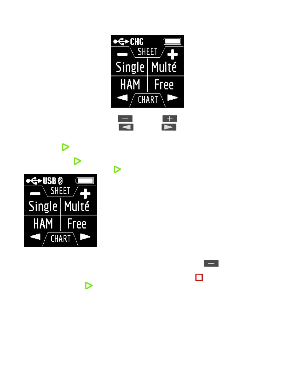 The Singe and Multé functions display the measurement result as numbers, while the HAM and Free functions