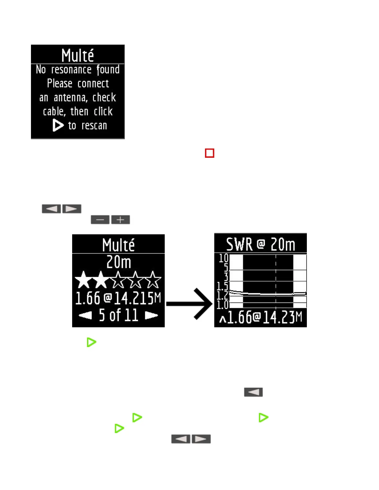 This mode allows you to measure and display the SWR antenna chart on the analyzer screen on one of the