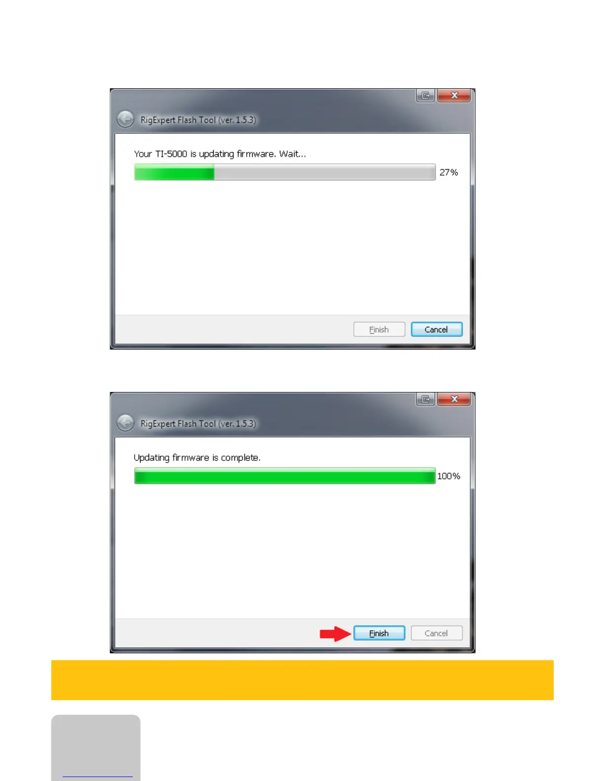 • Wait until RigExpert Flash Tool will finish the update firmware of your TI-5000