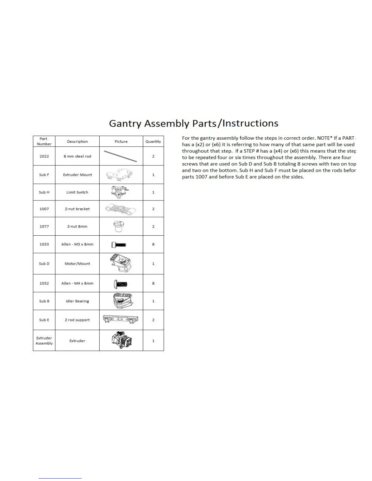 RIGIDBOT 2117 - Gantry Assembly Parts;Instructions