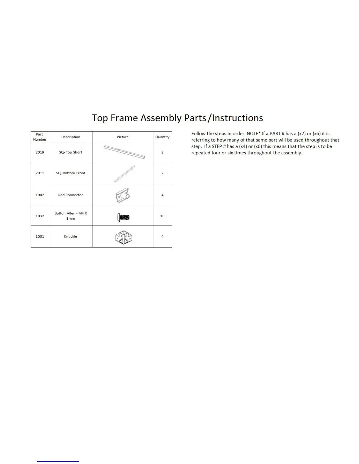 RIGIDBOT 2117 - Top Frame Assembly Parts;Instructions