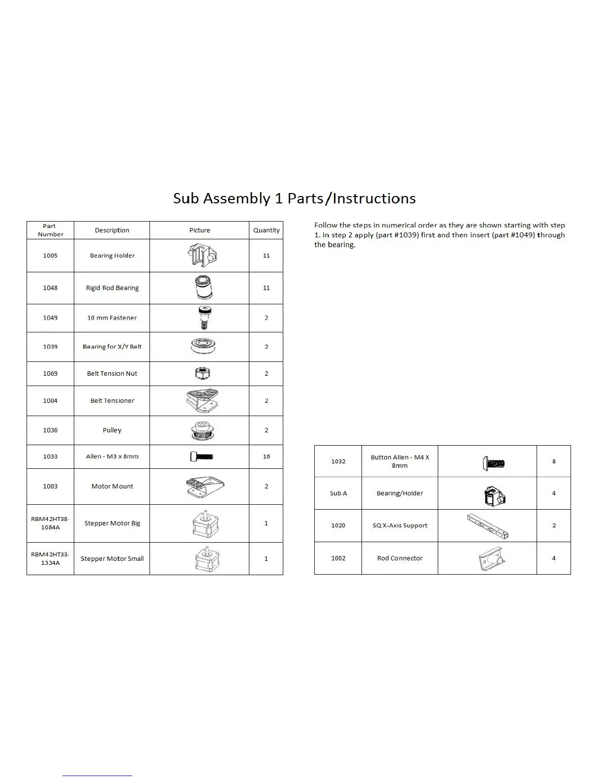 RIGIDBOT 2117 - Sub Assembly 1 Parts;Instructions
