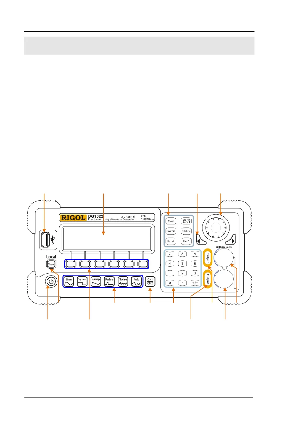 DG10× 2 Generator has clear and simple front panel. The Front Panel has a knob,