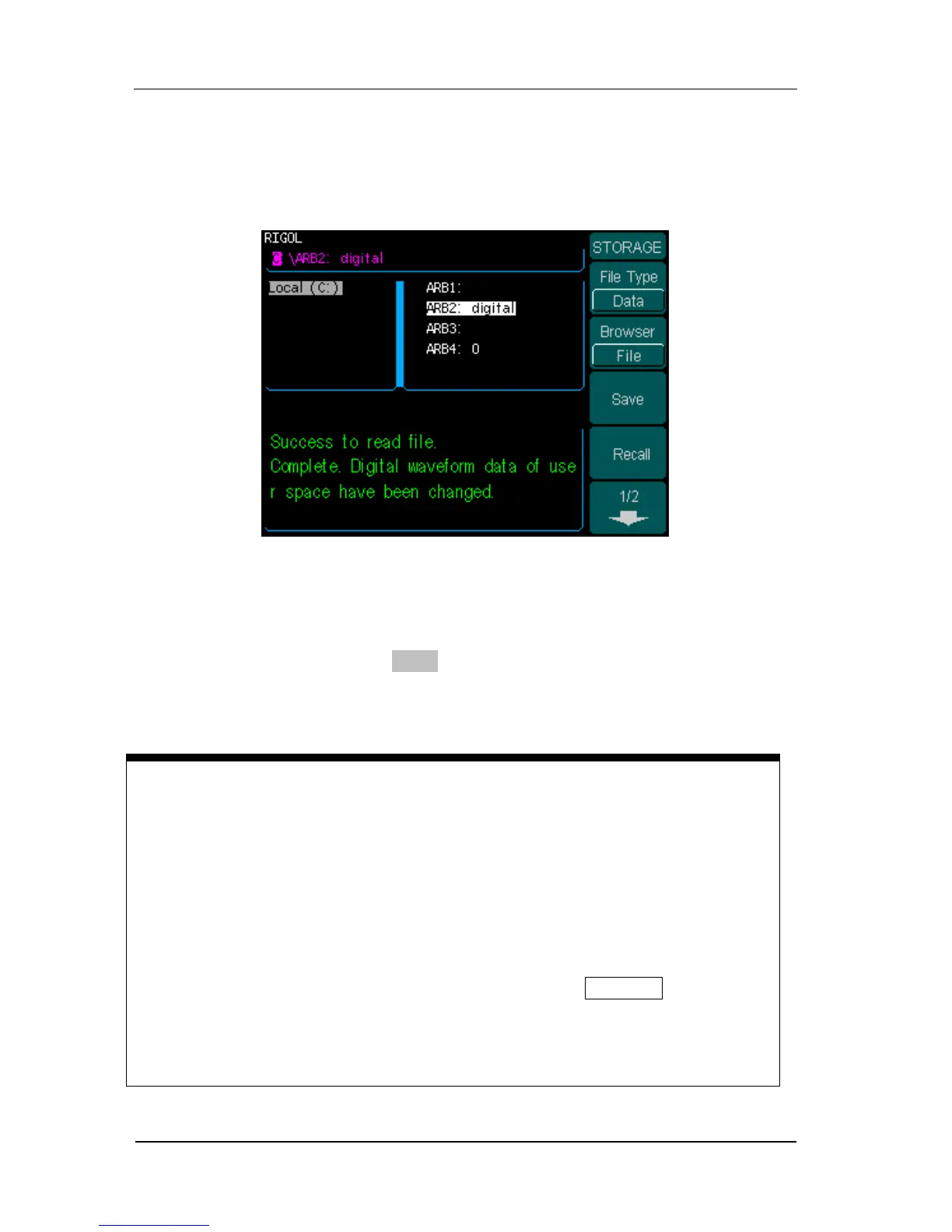 to select “ARB2: digital”. Press Recall to recall the file. The screen will display a