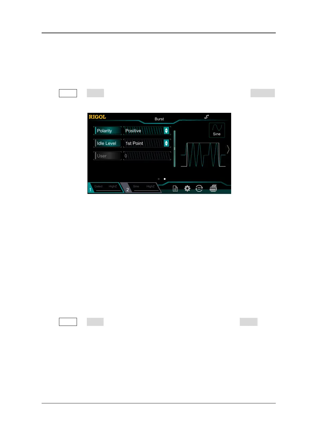 In Gated Burst Mode, the generator controls the waveform output according to the