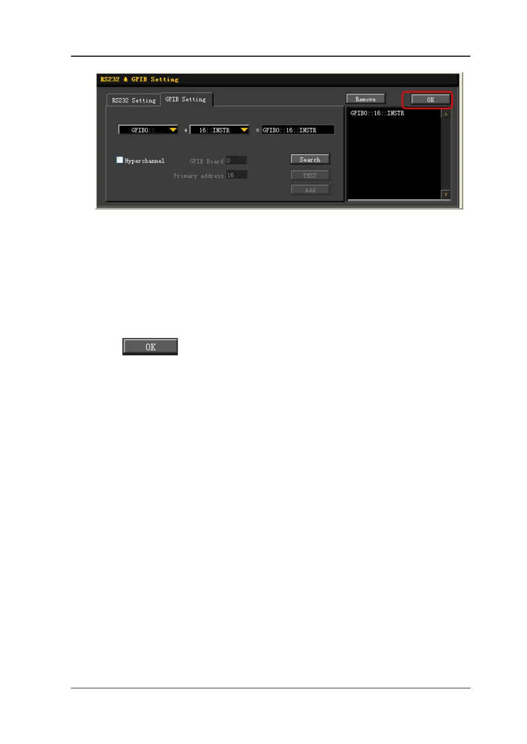 "GPIB0::" and select the GPIB address set in the signal generator from the