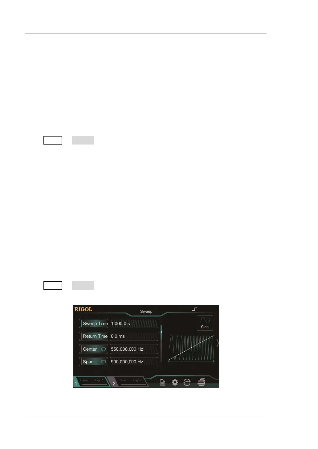 frequency to stop frequency within the specified sweep time. DG800 supports linear,