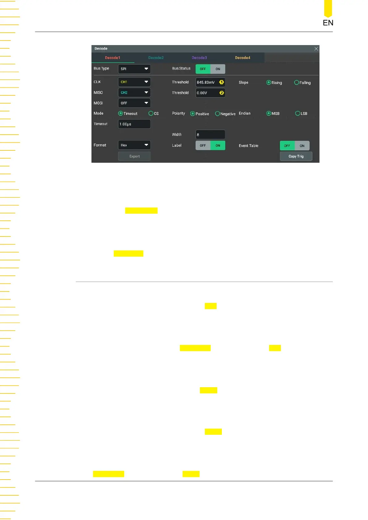 Copy trig indicates applying the trigger settings to the specified decoding setting.