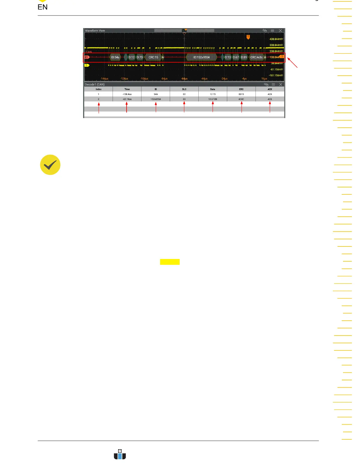 Data: Its display format is the same as that of the bus data (Hex, Dec, Bin, or