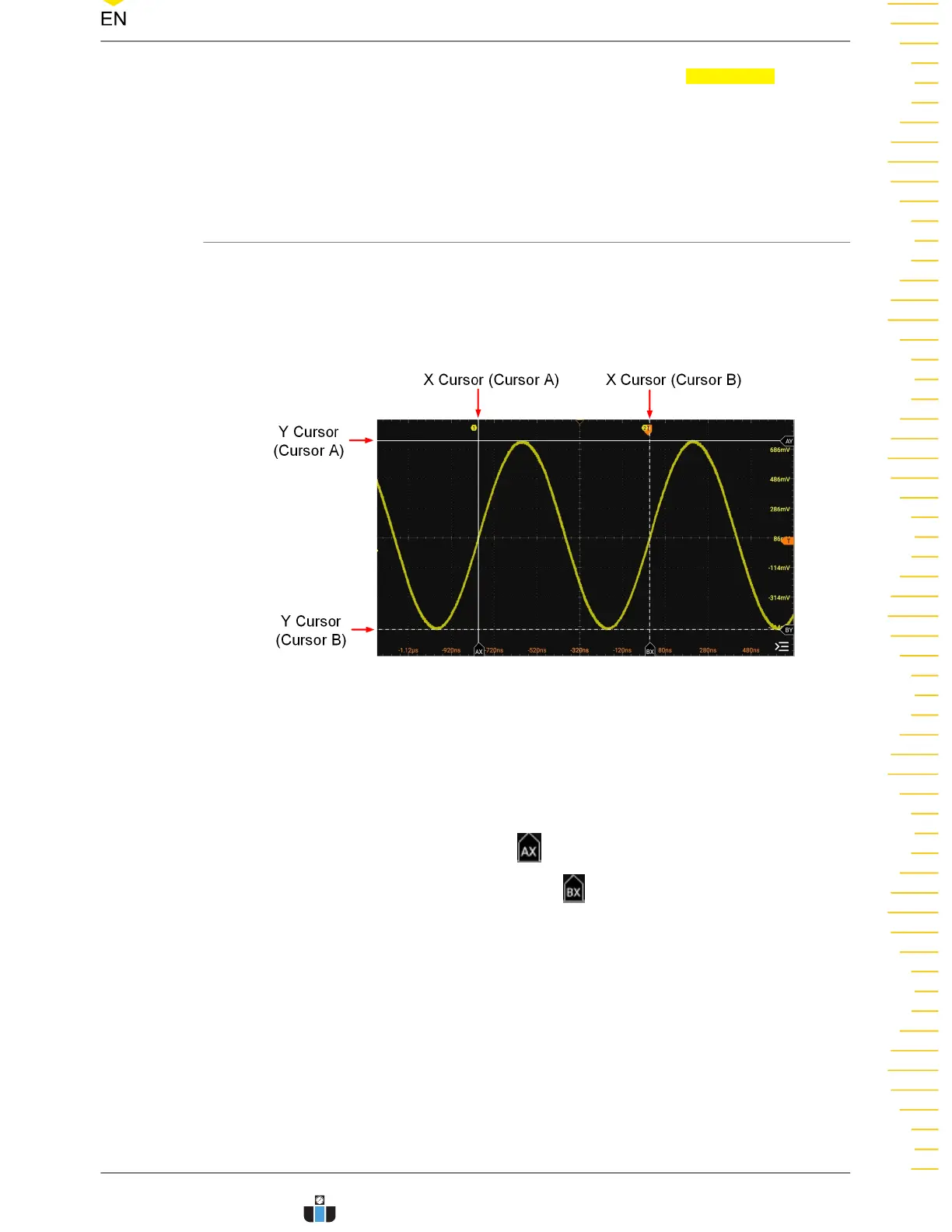 and Cursor B is a vertical dotted line ( is displayed at the bottom of the