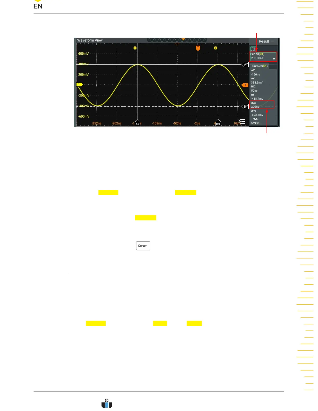 In the Track mode, you can adjust the two pairs of cursors (Cursor A and Cursor B) to