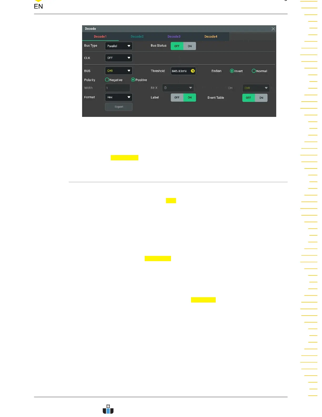 Click or tap the Bus Status on/off switch to enable or disable the bus decoding.