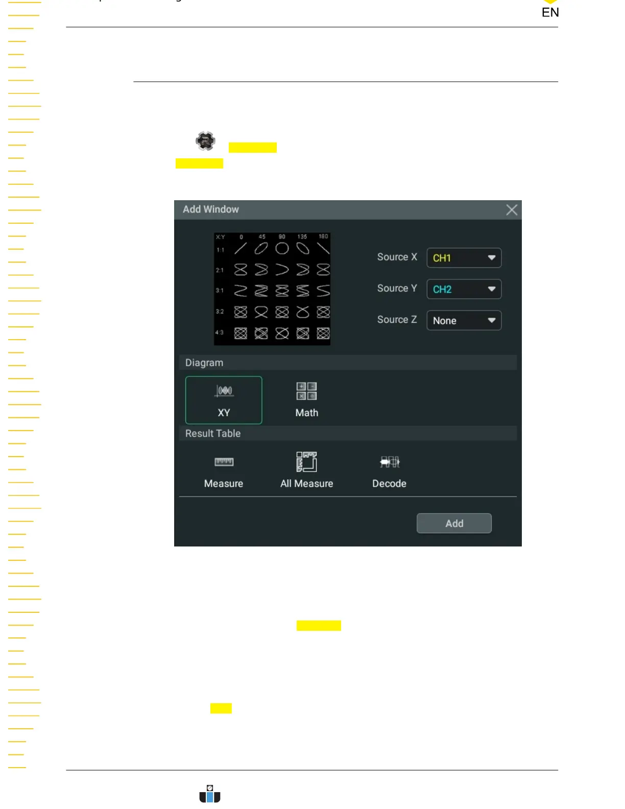 1. First, select "XY" or "Math" in Diagram. When a diagram is selected, its preview