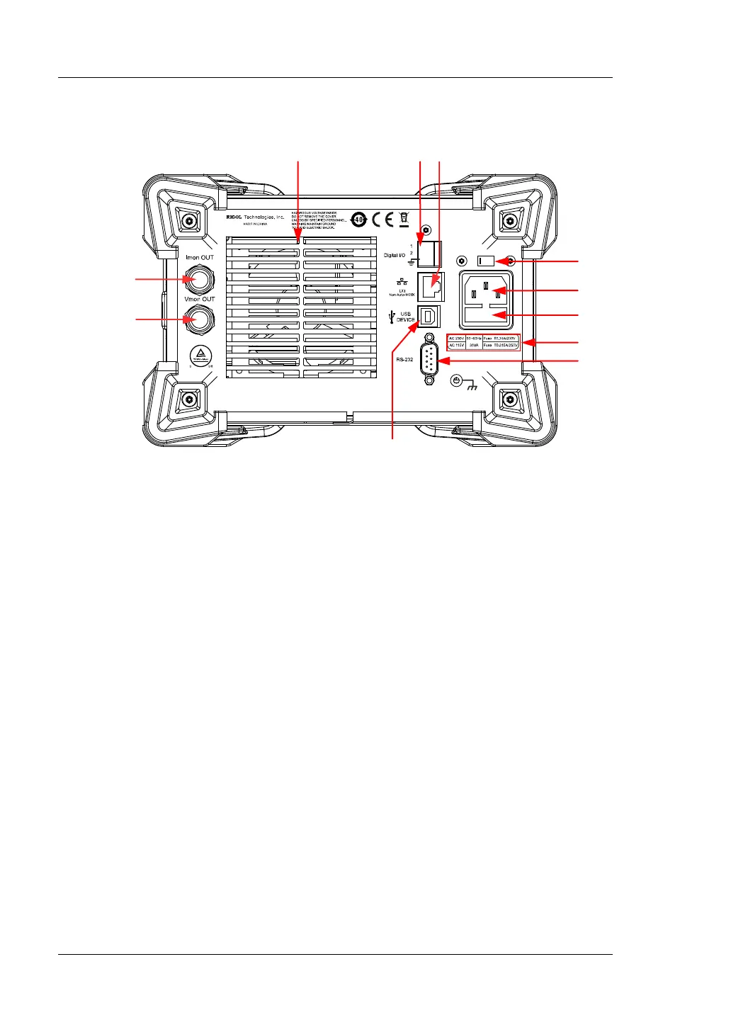The electronic load supports two AC voltage ratings: 115 V and 230 V.