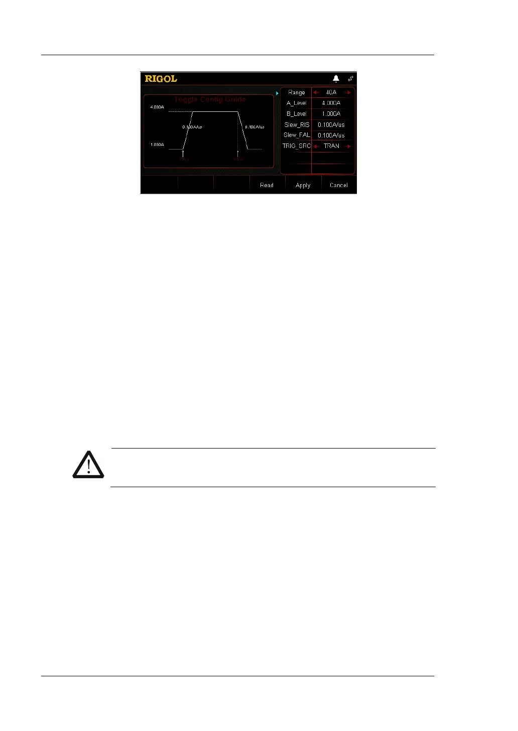 The parameters for the toggled operation mode include range, Level A, Level B,