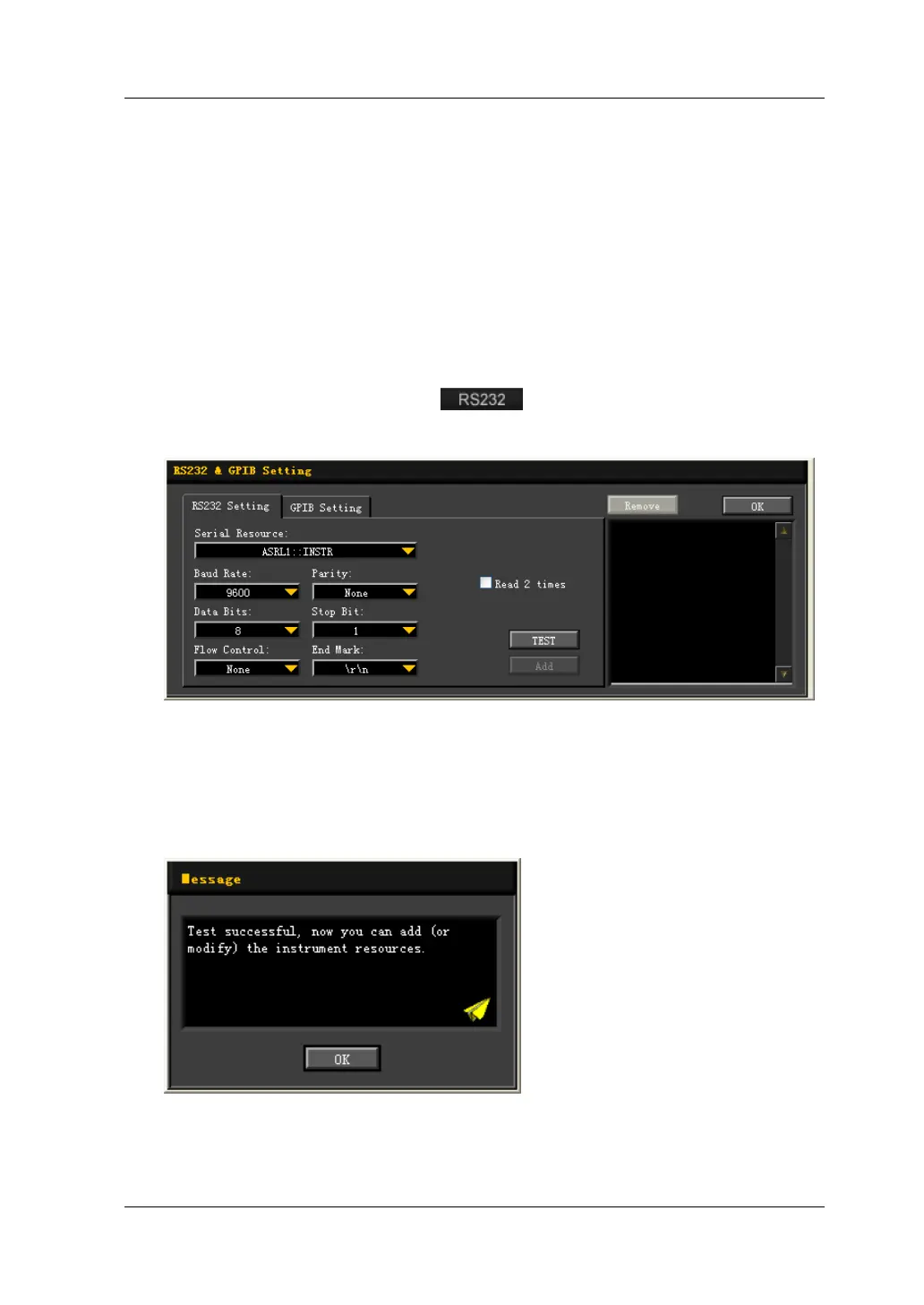 In the "RS232 Setting" tab, set Baud Rate, Parity, Data Bits, and Stop Bit that