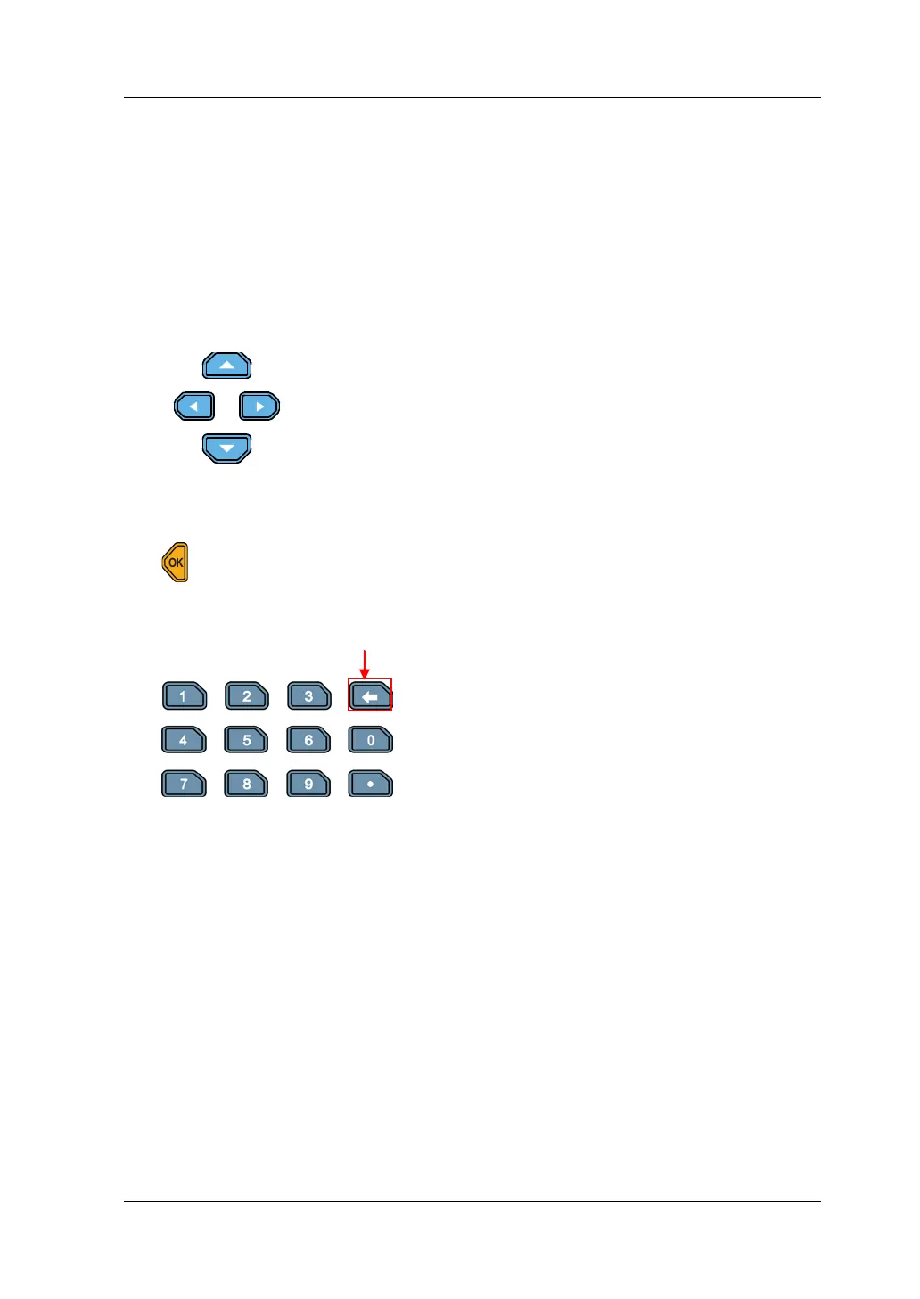 Control keys include the arrow keys, numeric keys, and confirmation key.