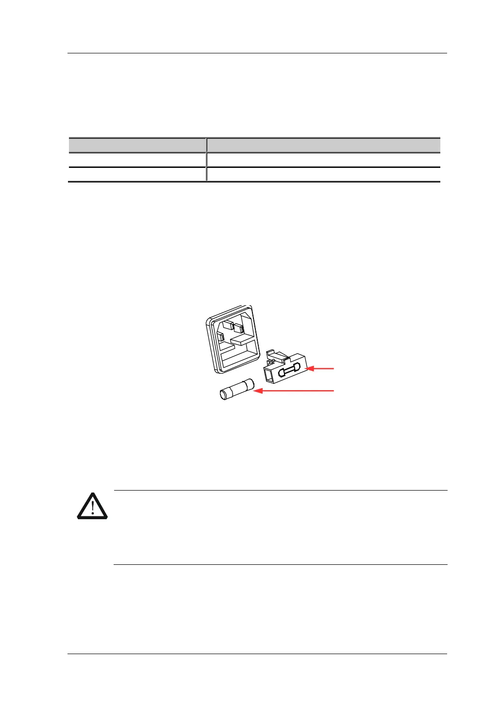 The fuse specification is related to the actual input voltage, as shown in Table 1-2.