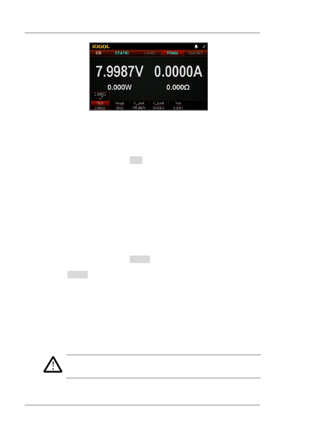 The constant resistance value in CR mode. The resistance unit is: Ω or kΩ.