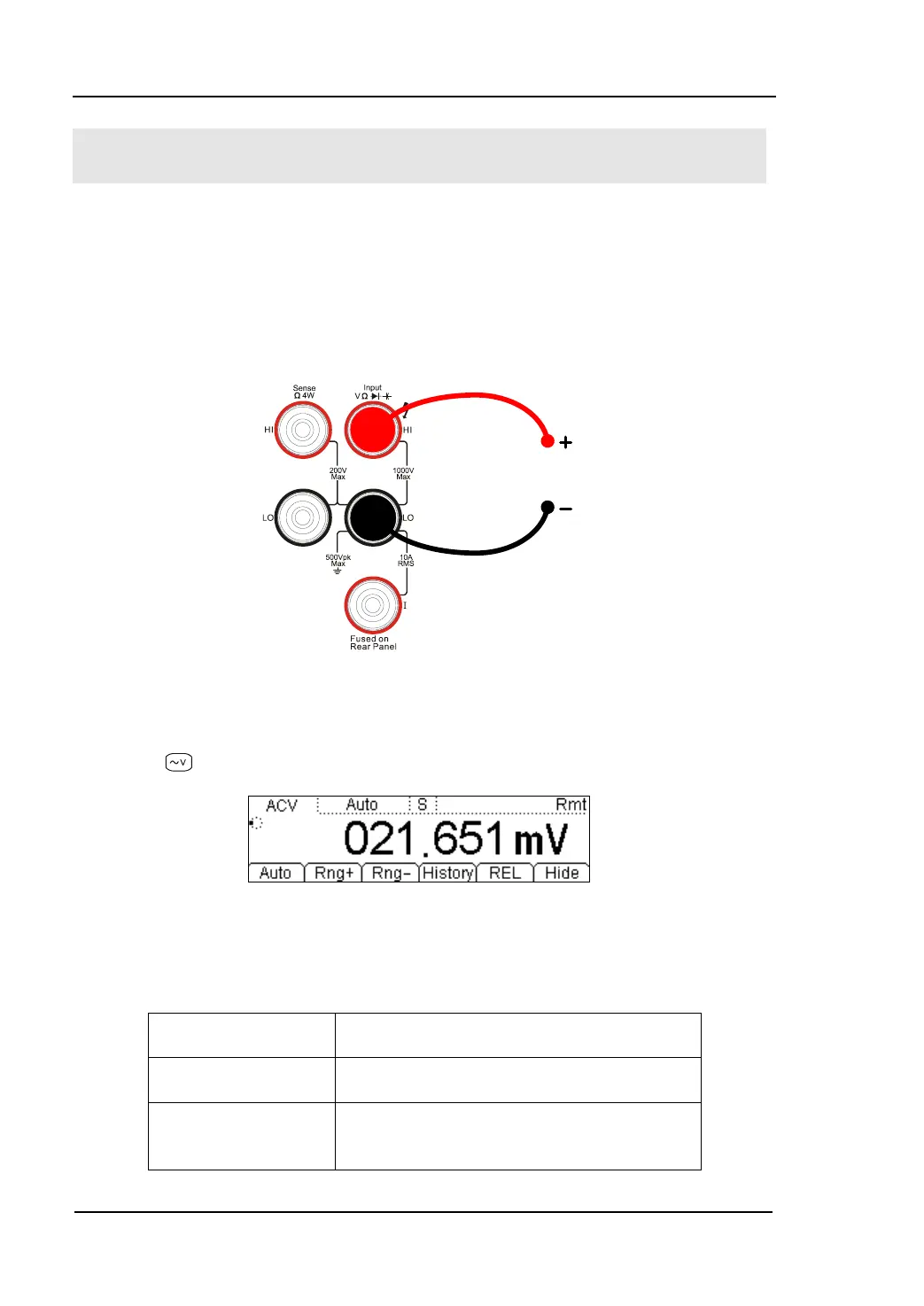 1. Connecting the red lead (Test leads) to Terminal Input-HI (tested circuit) and