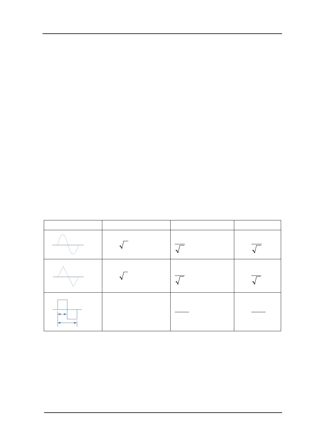 Table 5-1 True- RMS AC Measurements of Sine, Triangle and Square waves