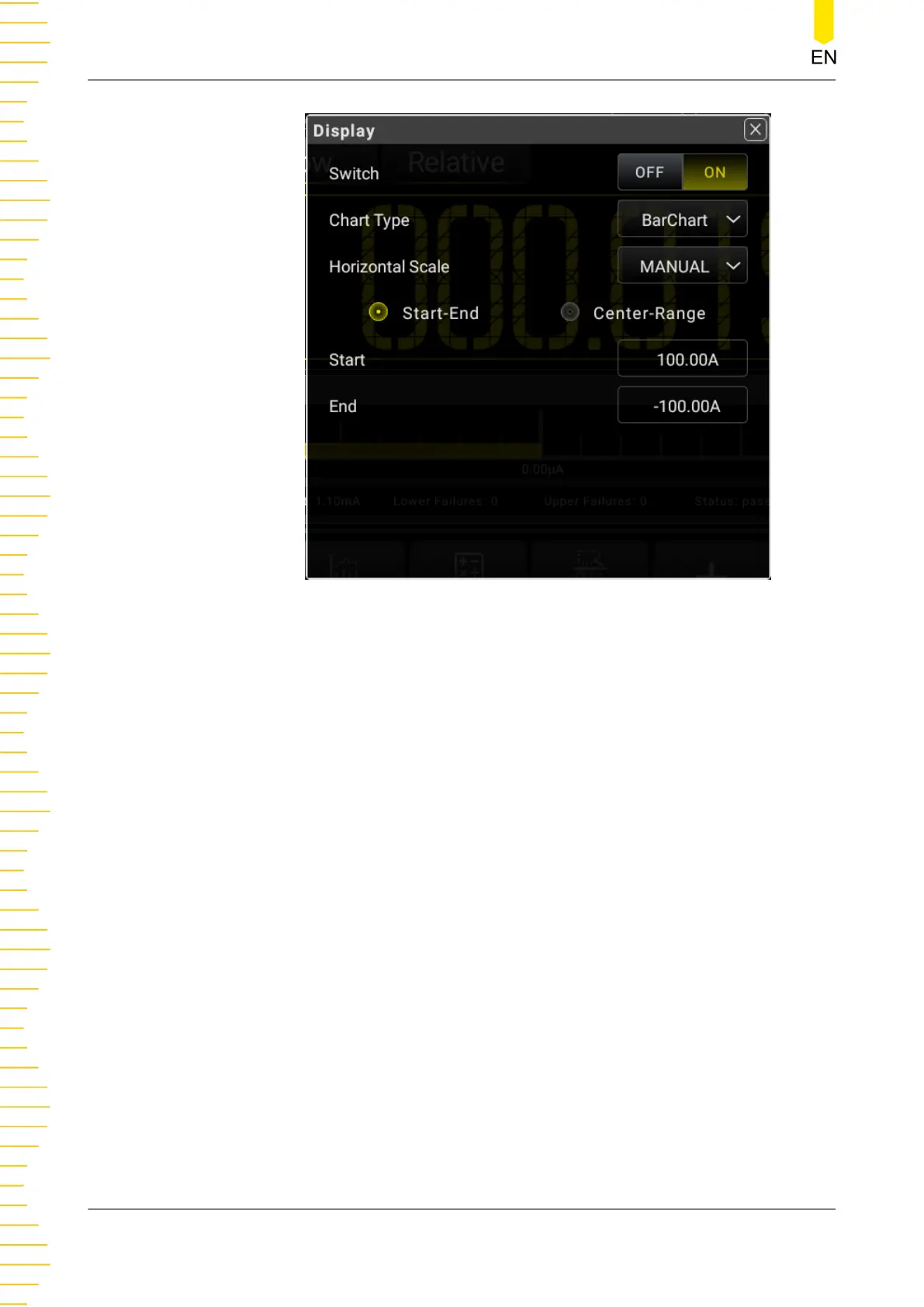 The following figure shows the bar chart display form for the DCV measurement.