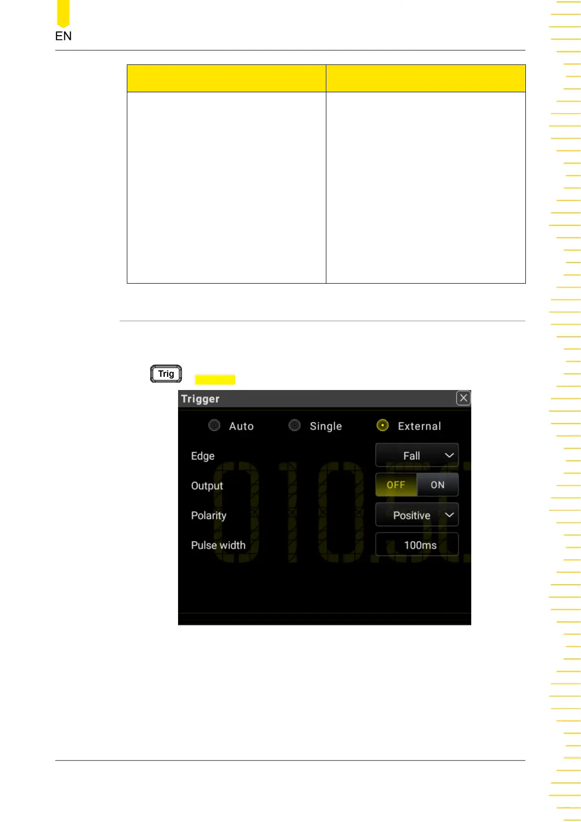 Press > External to enter the External trigger setting menu.