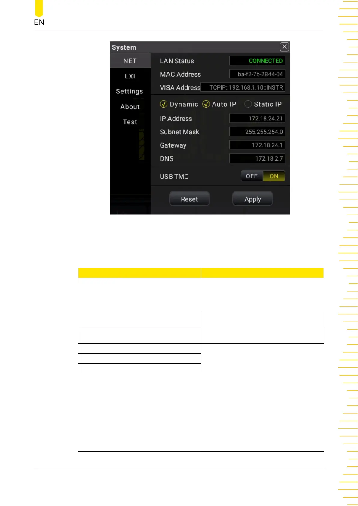 Table 5.26 NET Setting Menu