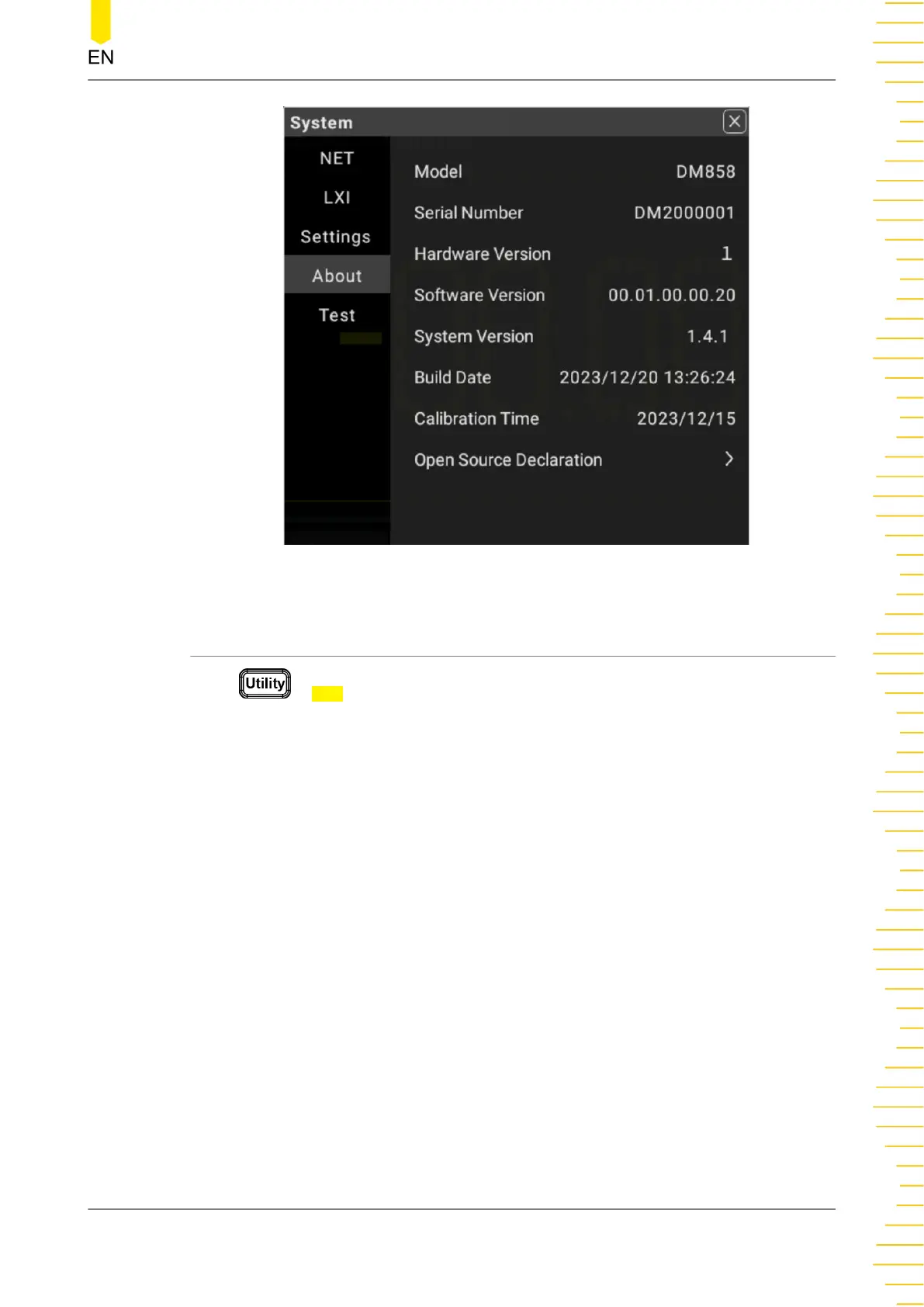 Rigol DM858 - Figure 5.72 Basic Information of the Instrument; Self-Check