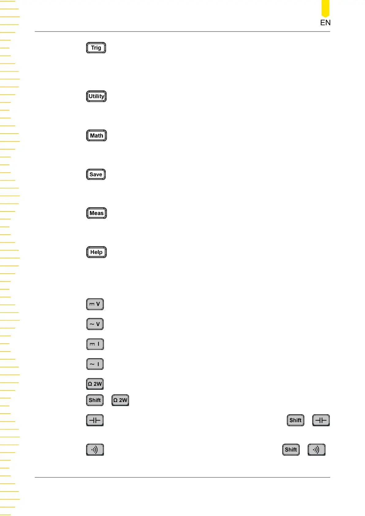 : Press this key to enable the 2-wire resistance (Ω 2W) measurement. Press