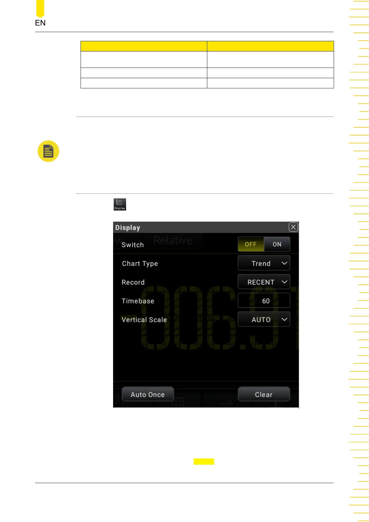 Click or tap the ON/OFF tab for the Switch menu to enable or disable the graph