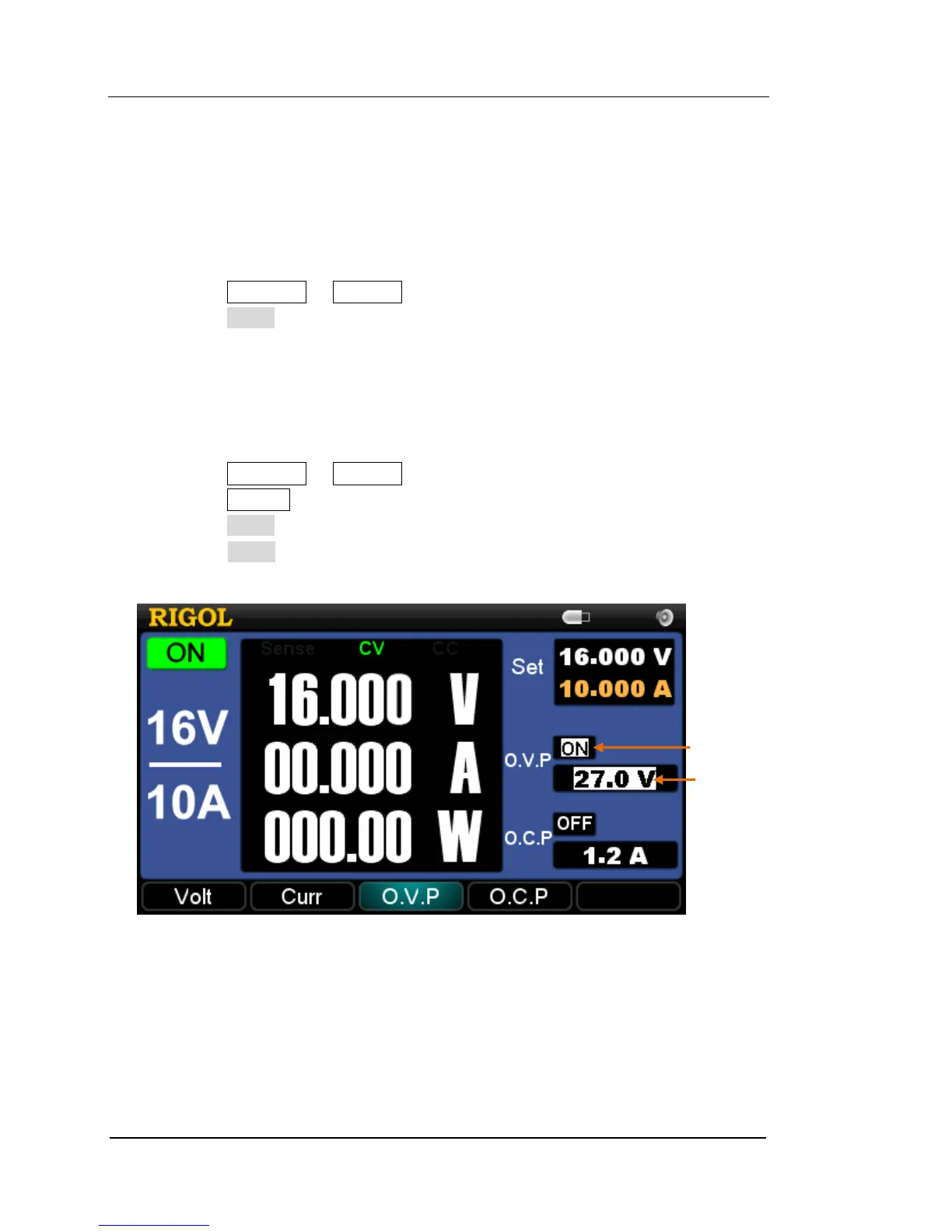 Press O.V.P continuously to switch the state of the O.V.P between ON and