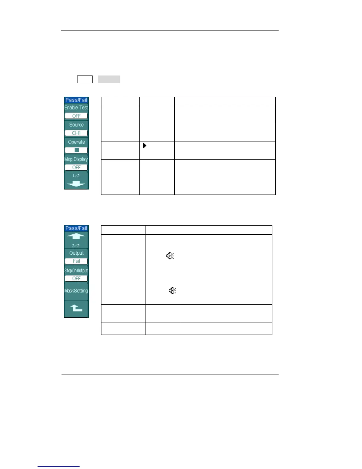 Press Utility→Pass/Fail to go to the following menu.