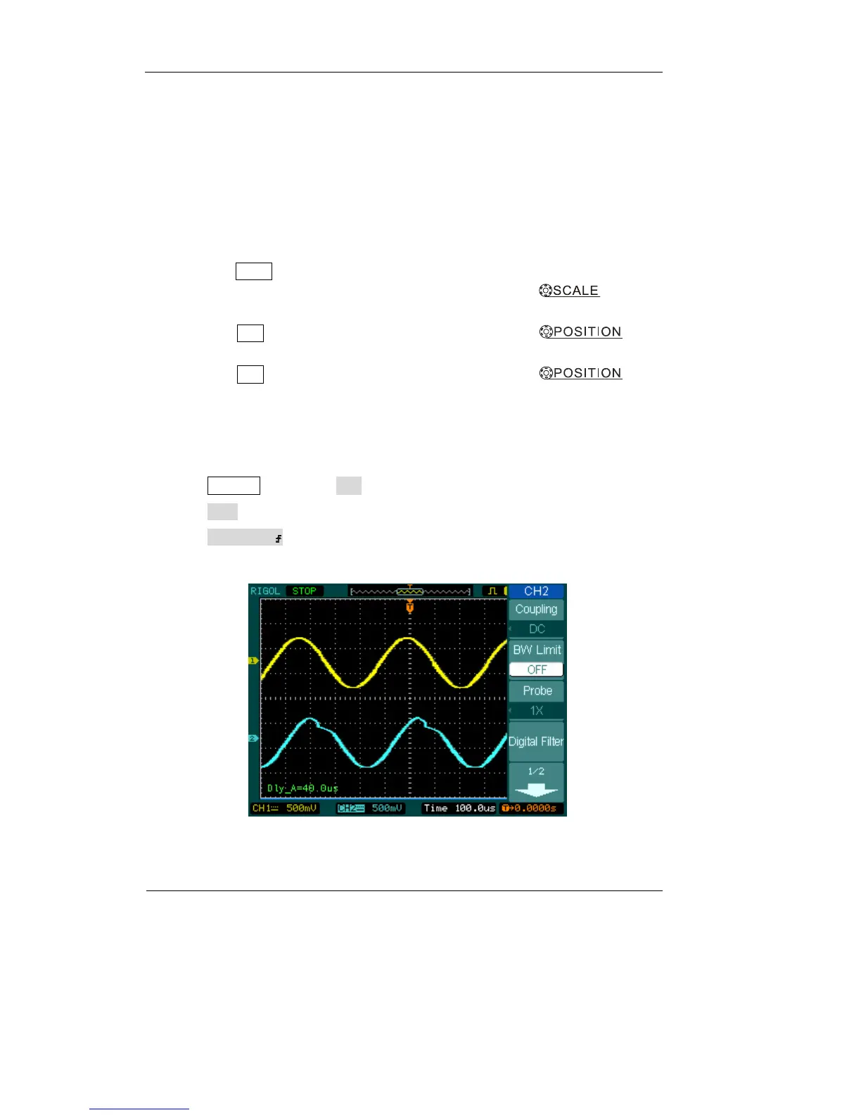 delay. First, set the probe and the channel attenuation to 10X and connect CH1 probe