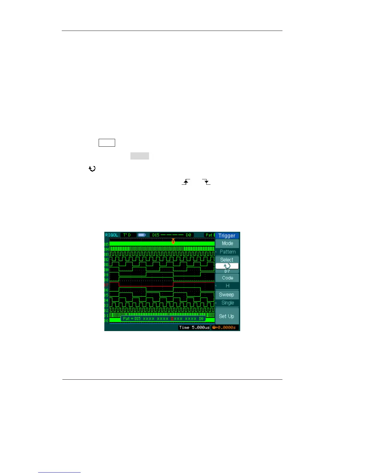 The triggering way, especially to the Digital Signal, which the Pattern and Duration