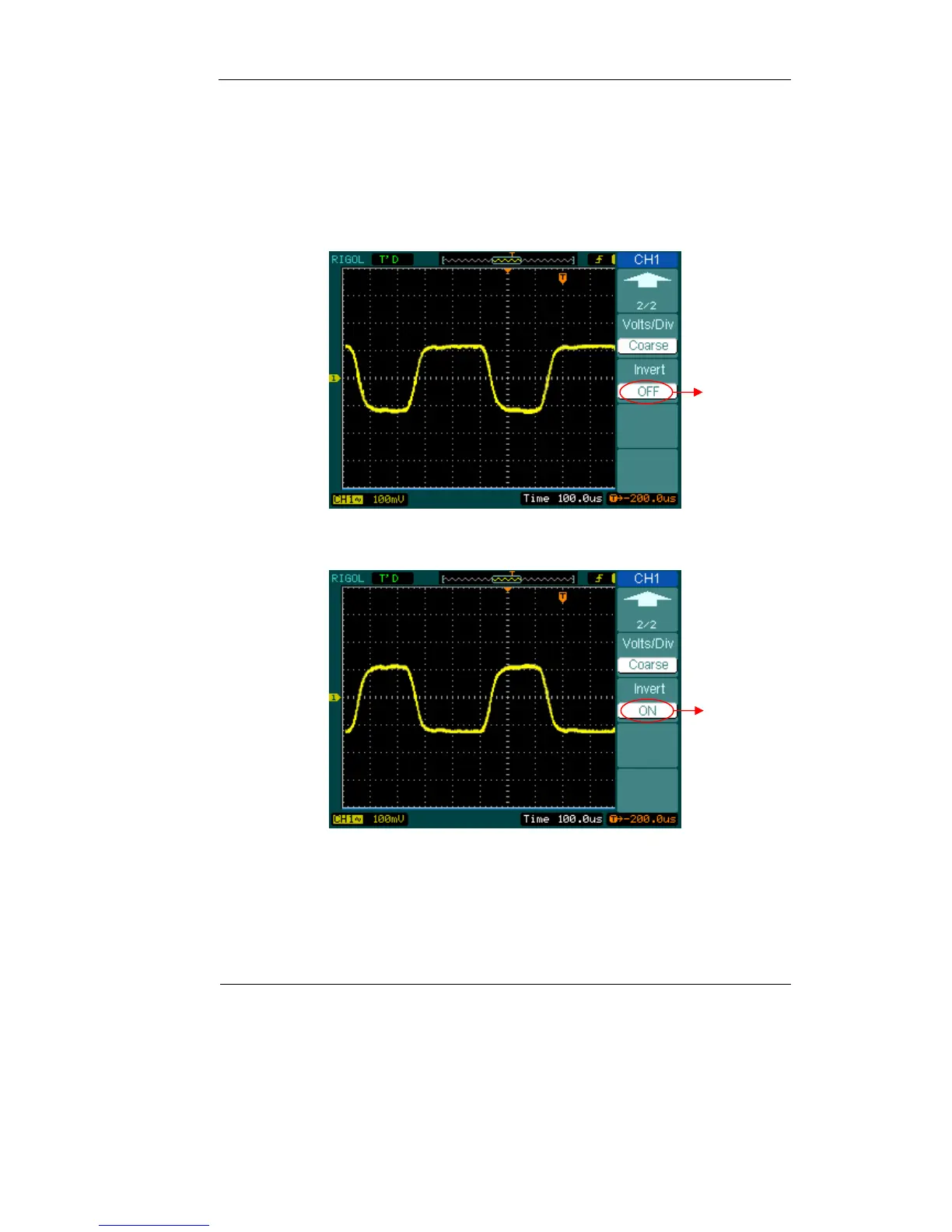 Invert turns the displayed waveform 180 degrees, as respect to the ground level.