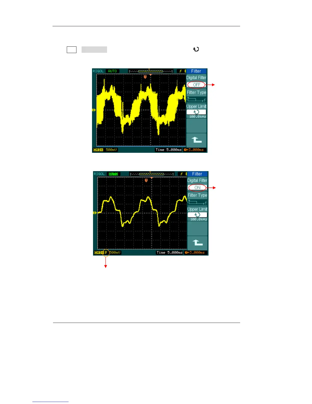 Press CH1Digital filter, display the digital filter menu. Turn ( ) knob to set high