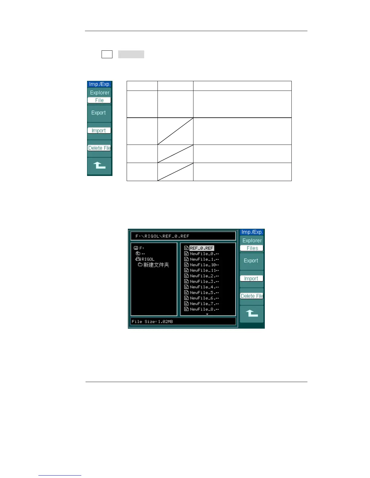 Press REF→Imp./Exp. and go to the following menu.