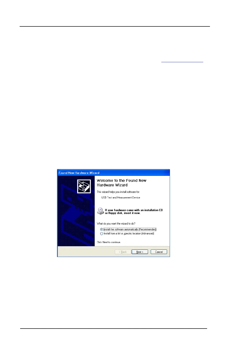 guide you to install the driver of “USB Test and Measurement Device” on the PC.